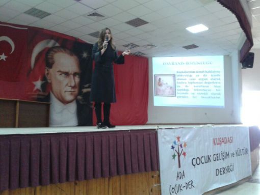 23.01.2014 - Endüstri Meslek Lisesinde seminer: Yönetim kadromuzdan Sevda Temurhan'ın derneğimizi tanıtıcı konuşması ile başlayan seminer Çakabey ilkokulundan Psk.Dan.Kübra Kurban "Çocuklarda davranış problemi", "Etkili iletişim" konularında devam etti.